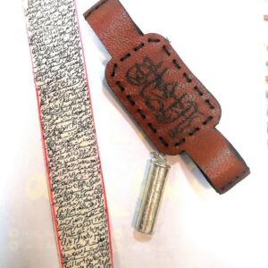 حرز امام جواد علیه السلام نوشته شده روی پوست آهو به همراه استوانه نقره ای و
