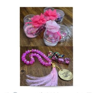 💫 پک هدیه فرهنگی دخترانه 💫 🎀 هدیه‌ای ماندگار، هم مادی، هم معنوی! ✨ محتوای پک: تسبیح کریستالی صورتی 33
