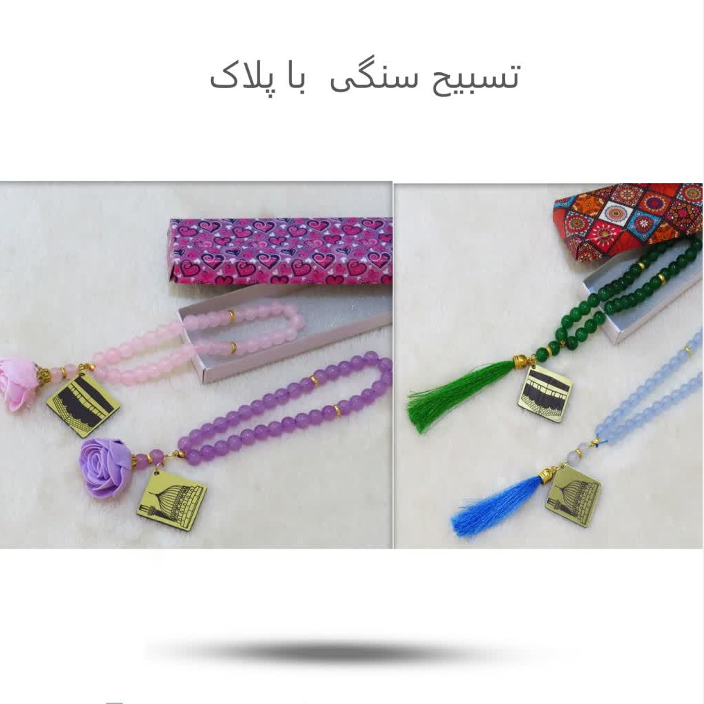 برچسب زدن تسبیح سنگی پلاکدار، هدیه مذهبی نفیس، تسبیح حج، زیورآلات مذهبی، سوغات معنوی