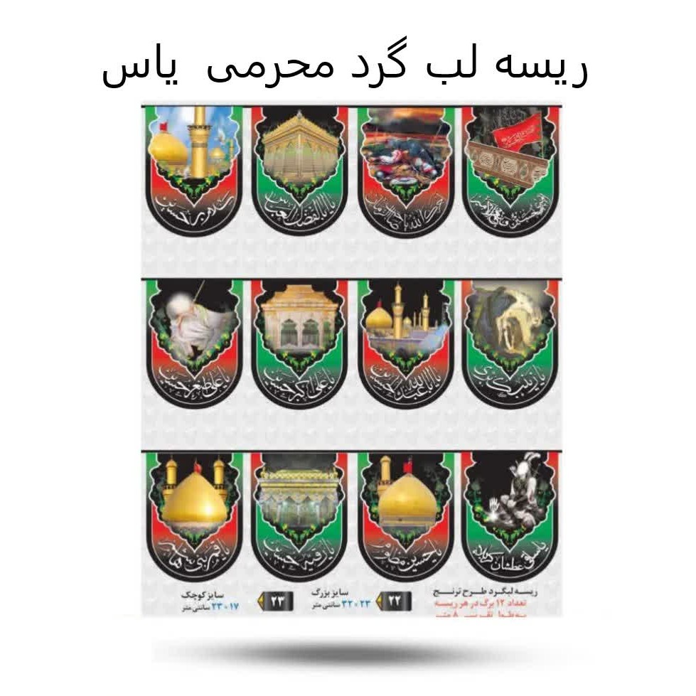 برچسب زدن ریسه لبگرد محرمی، تزئینات عزاداری، محصولات محرم درجه 1، تزئین حسینیه