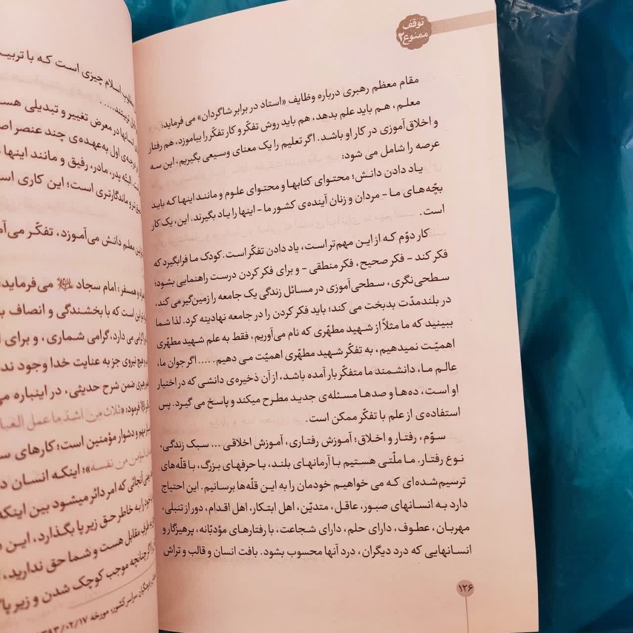 🌿در همین راستا کتاب توقف ممنوع 2 گزید ه ای است از نصایح امام خامنه ای برای جوانان و مسائل اعتقادی, اخلاقی ,حقوق, اصناف, ازدواج و همسرداری و فرزندان و کتاب اخلاق کاربردی نوشته آیت الله عبالهادی حسینی شاهرودی عضو محترم مجلس خبرگان رهبری که در اختیار جوانان مشتاق معارف اسلام ناب محمدی تقدیم می گردد.