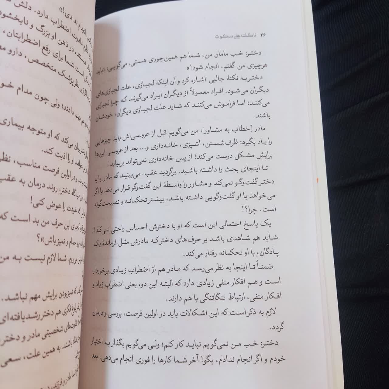 🌸کتاب ناگفته های سکوت، نوشته محبوبه پرهیزکار داستان مراجعه نوجوانی است به نام شیوا که در روابطش با مادر و نامزدش، دچار مشکل است.