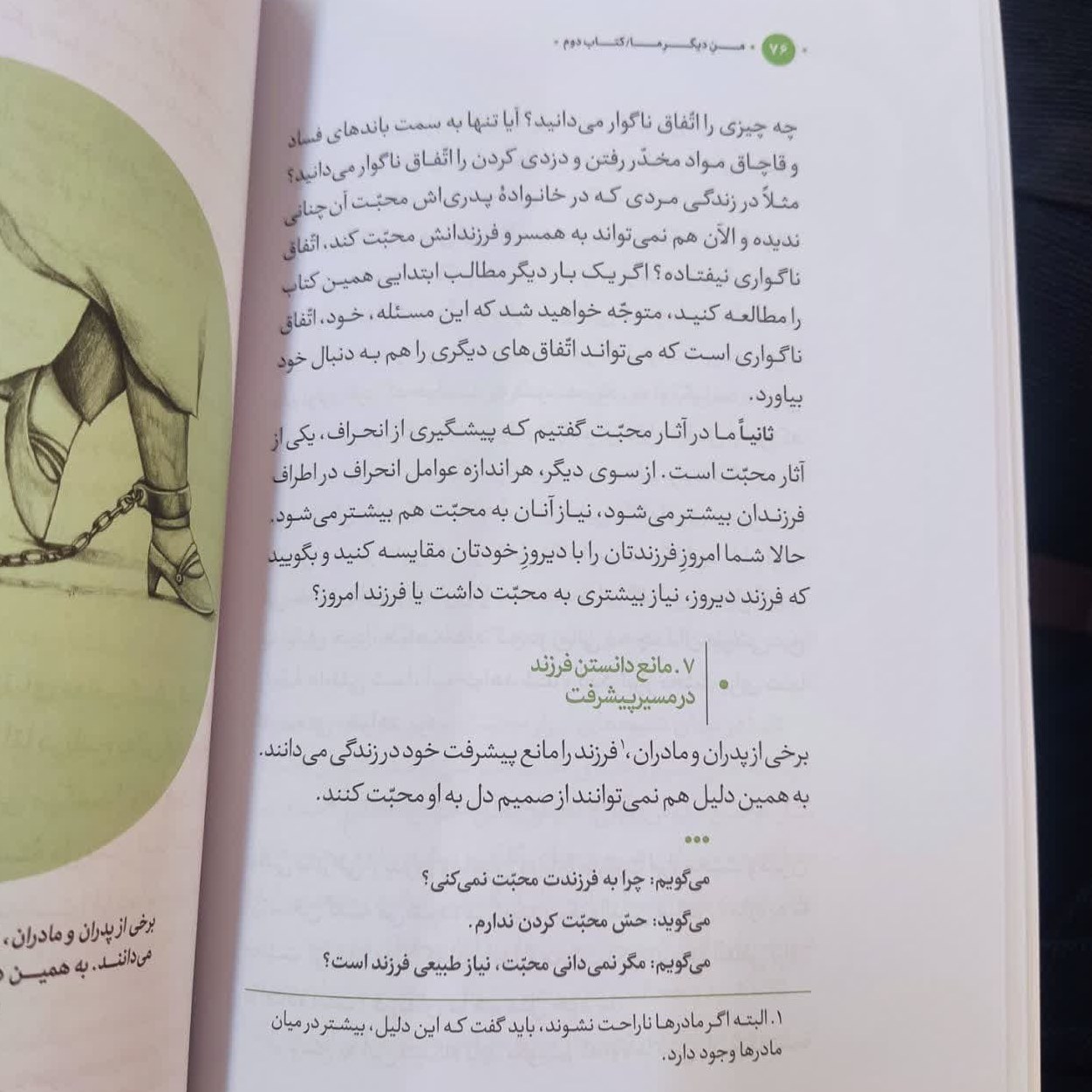 🌺مشاور ضمن بررسی مشکل او، با نامزد و مادرش نیز ،جلسات مشاوره متعددی دارد که در این کتاب تقریبا کل صحبتهای مشاور، نوجوان، مادر و نامزدش به رشته تحریر در آمده است و نهایتا جلسات مشاوره منجر به خرسندی مراجع از مشاوره و بازسازی روابط بین افراد می گردد.